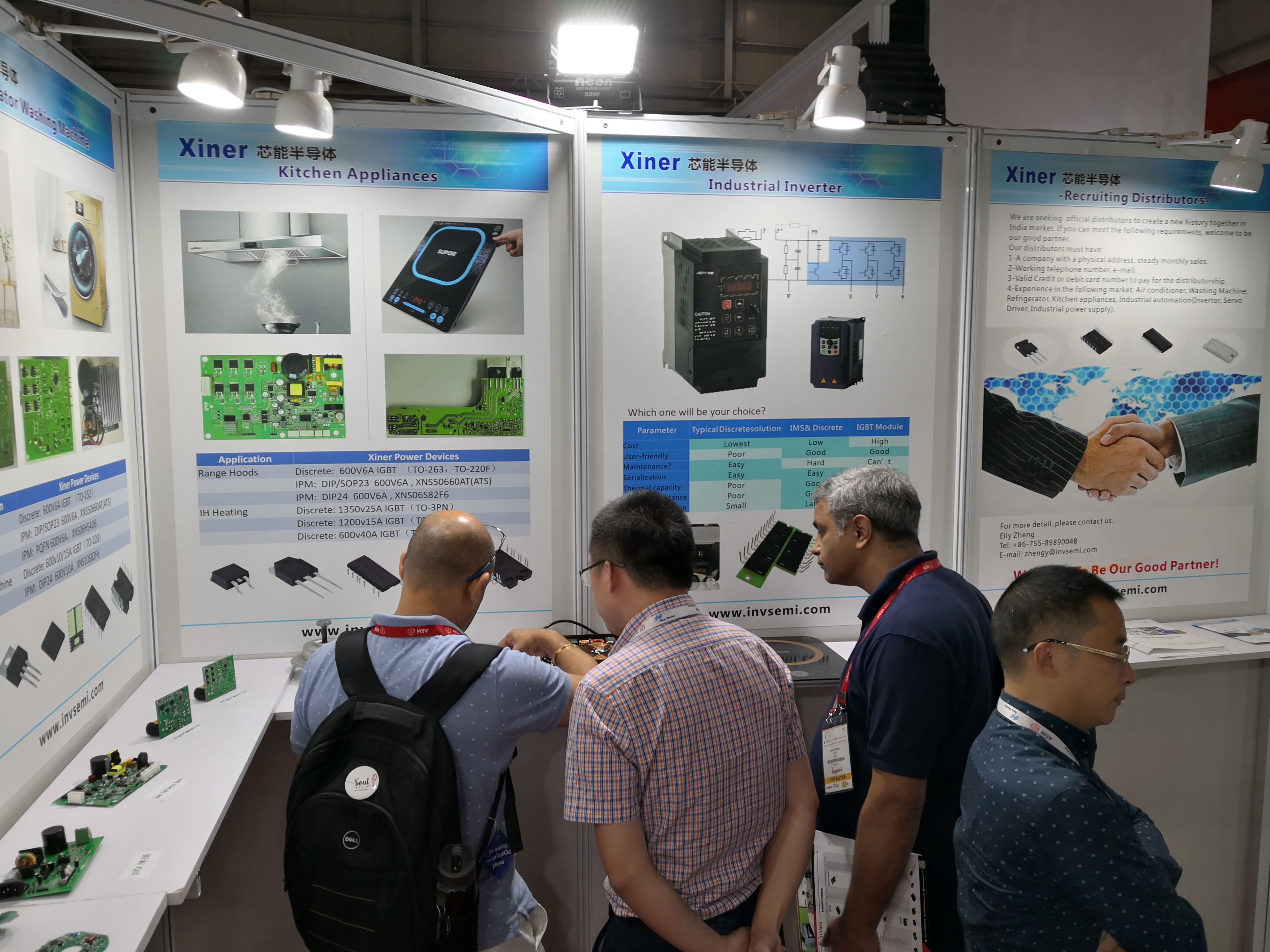 本次展會(huì )芯能不僅展出了IGBT單管、IPM和IGBT模塊等器件級產(chǎn)品,還帶去了各類(lèi)評估板和解決方案,后者對目前的印度市場(chǎng)更有吸引力,讓芯能的展臺一直有很高的受關(guān)注度。展會(huì )期間,芯能和印度本土的多家品牌制造商、方案商、代理商進(jìn)行了充分交流,為后續的進(jìn)一步合作打下了良好基礎。
