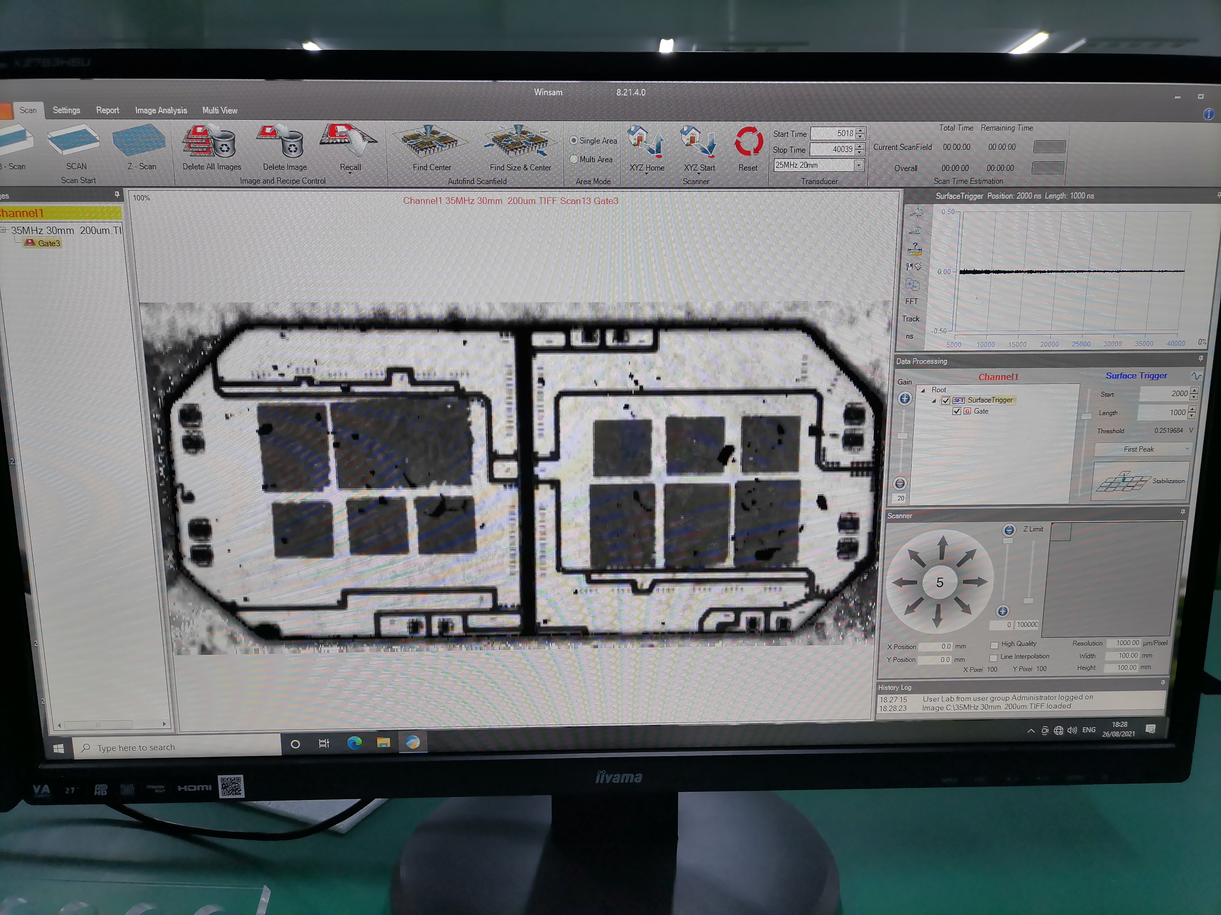 檢測半導體器件及IGBT功率模塊內部焊接缺陷,計算空洞率,治具為防水密封盒自動(dòng)出入水裝置,掃描效率高。
